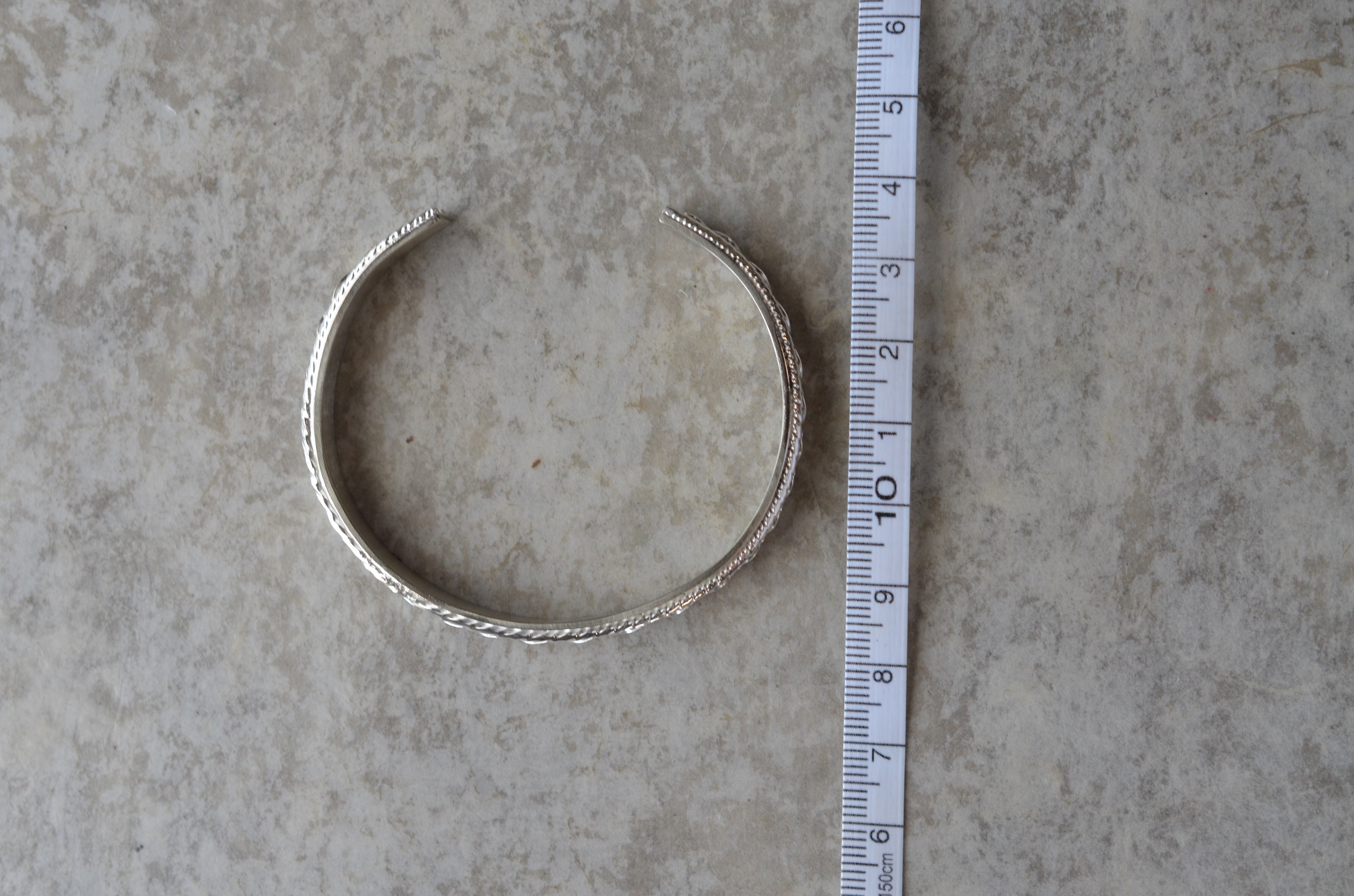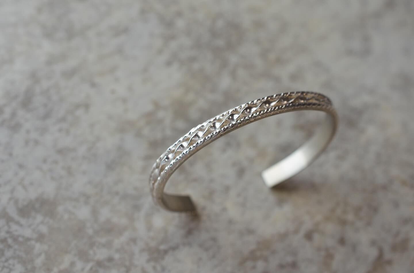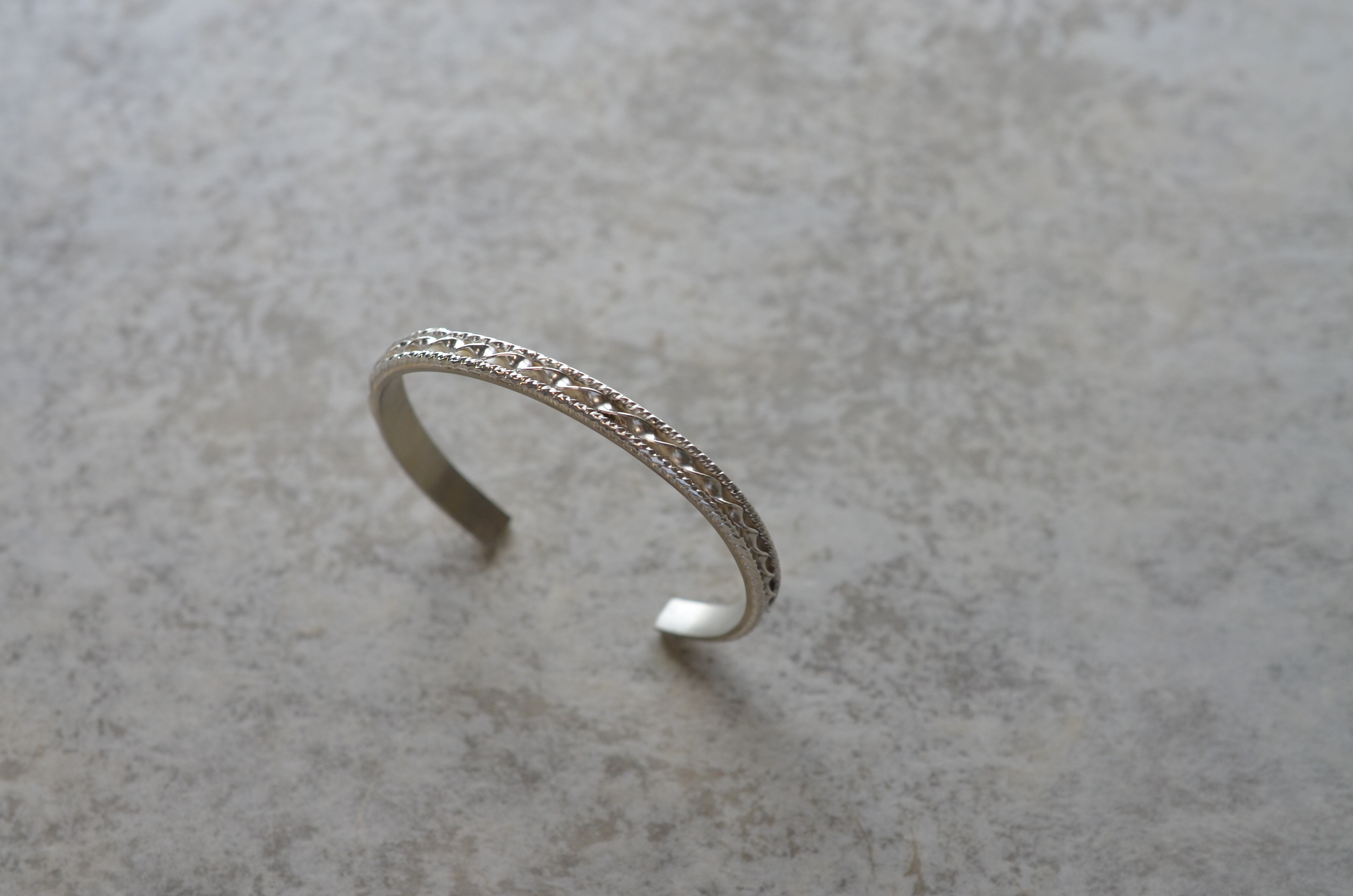 ツイストさせたシルバーで作った模様のバングルです。
