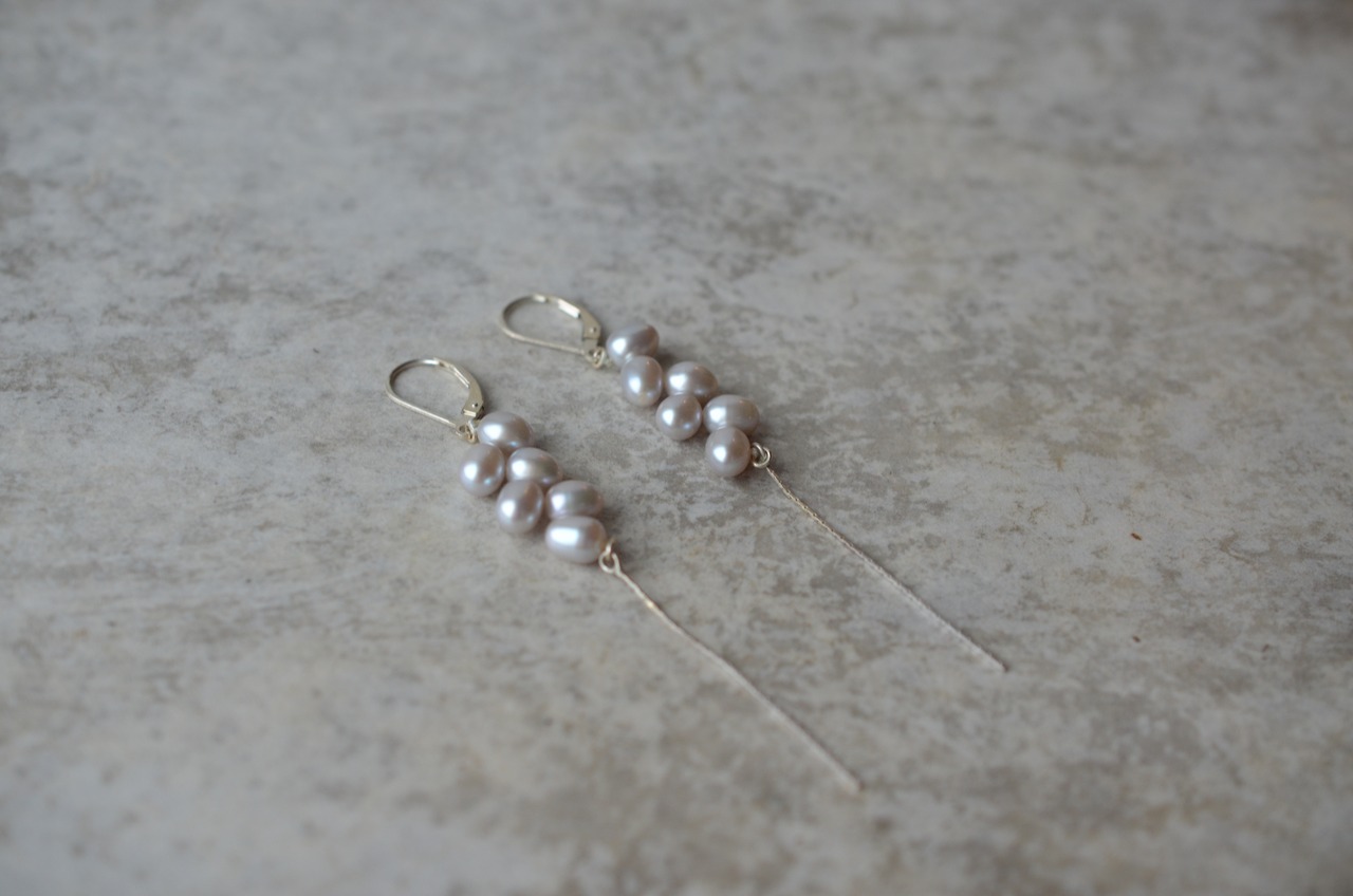 No.353 ピアス(ポテトパール×スウェッジチェーン)