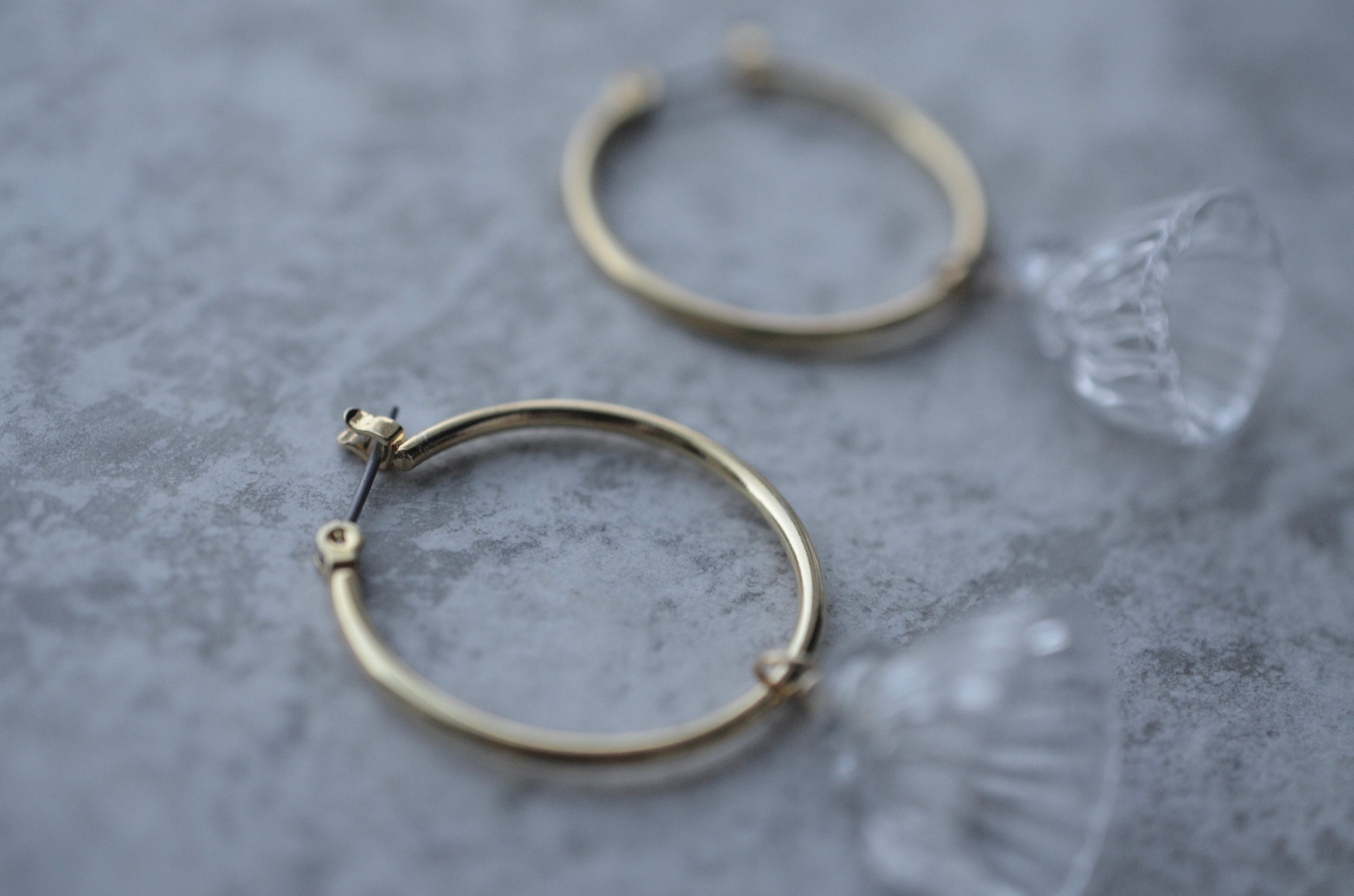 ガラスチャーム部をとってフープピアス単独でお使いいただくことも可能です。