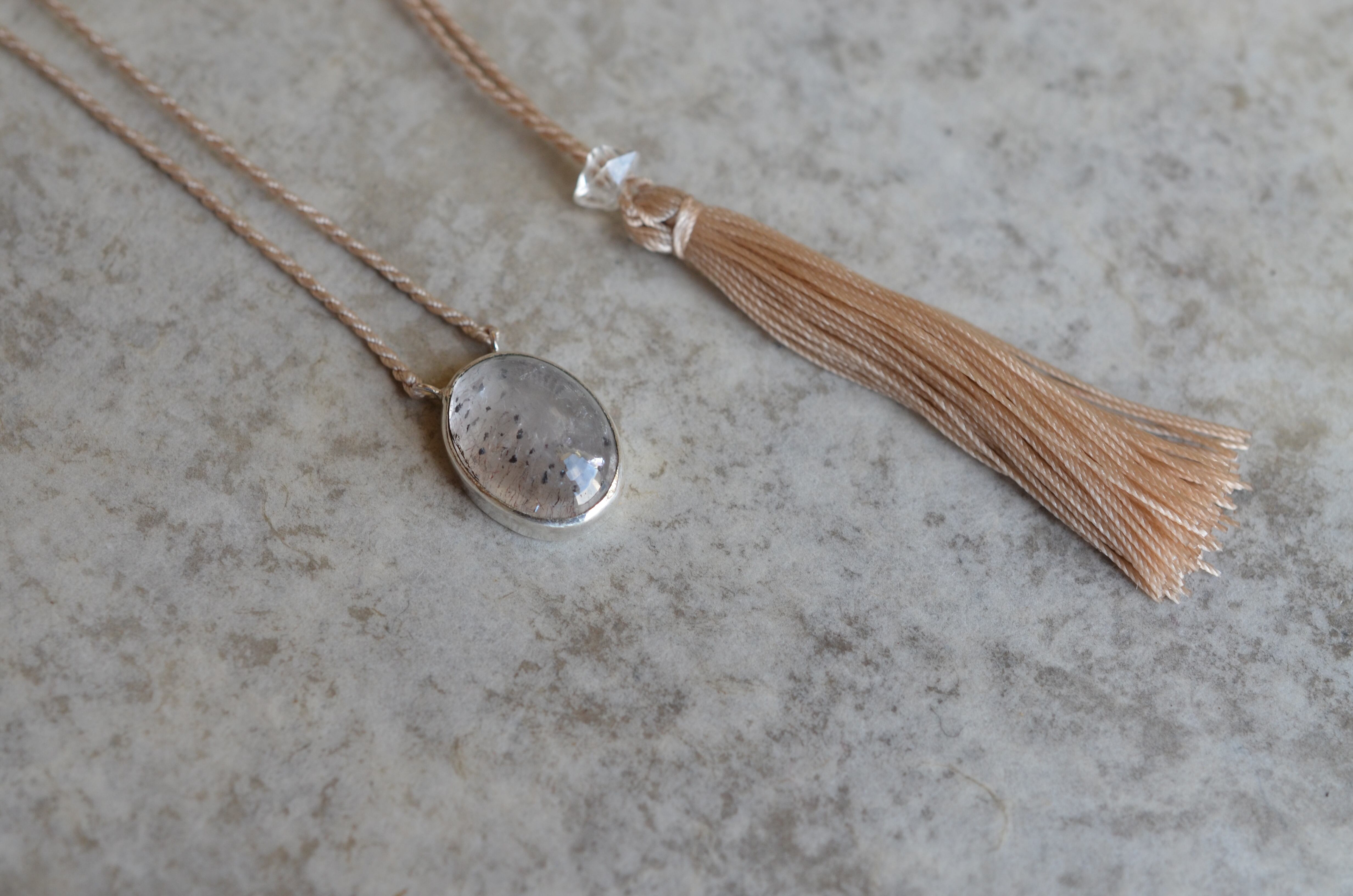 素材:Silver 925、シルク、ストロベリークォーツ、ハーキマークォーツ